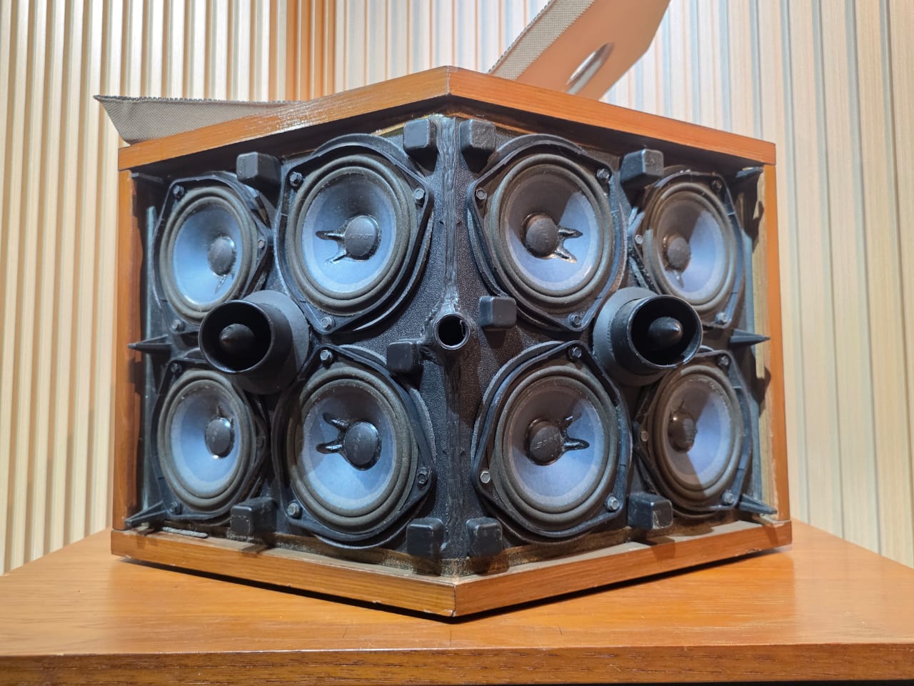 - Acoustic Matrix Enclosure: A ported cabinet designed to manage driver output and reduce internal noise.